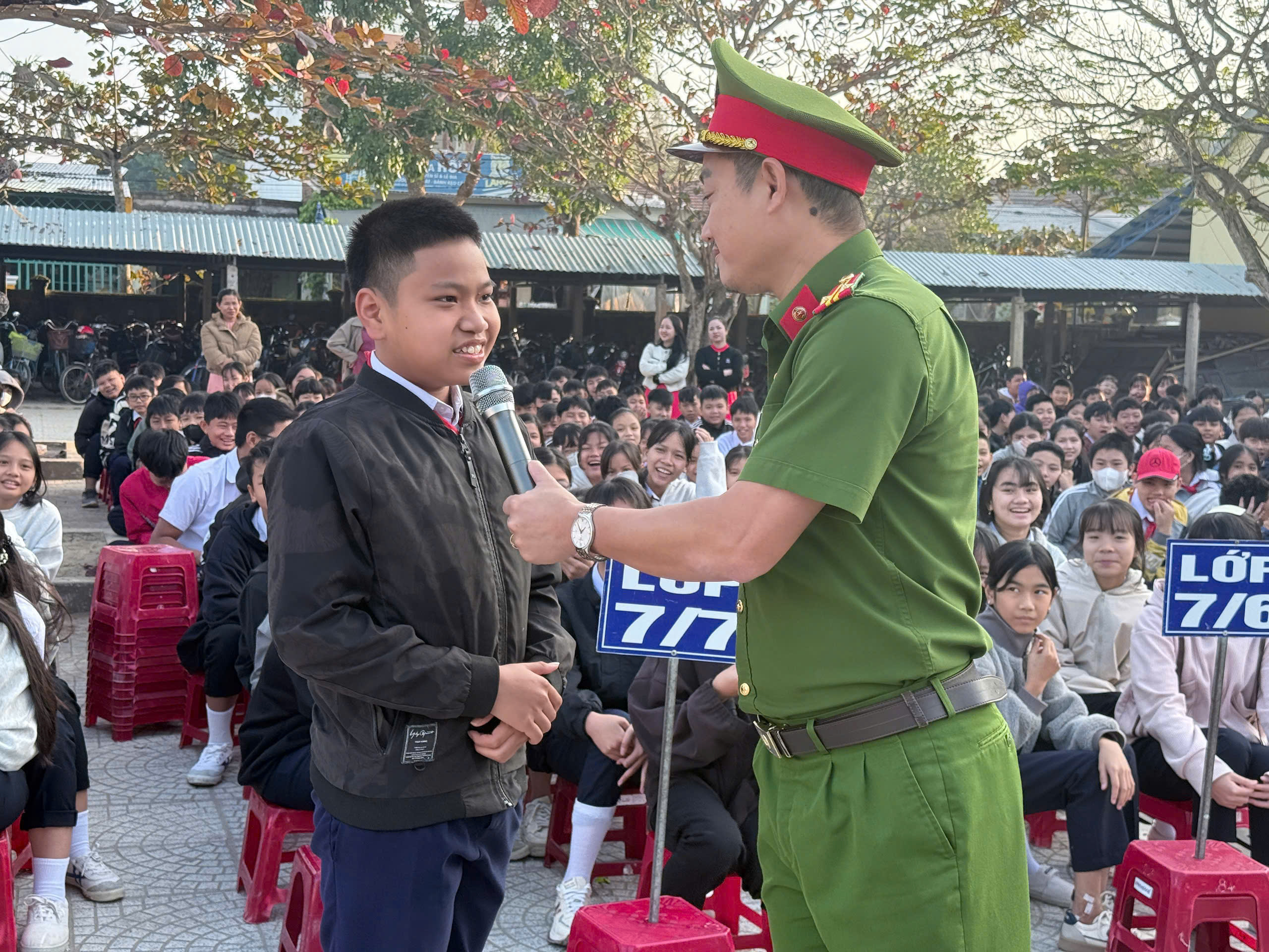 Tại buổi tuyên truyền, báo cáo viên đã thông báo tình hình tội phạm, vi phạm pháp luật và các vụ tai nạn điển hình liên quan đến pháo, vật liệu nổ; thông báo tình hình tội phạm đường phố, tội phạm và vi phạm pháp luật trên không gian mạng, tội phạm ma túy, tình hình chấp hành quy định pháp luật trong tham gia giao thông đường bộ của học sinh. Đồng thời, các cán bộ Công an phường, Viện kiểm sát nhân dân khu vực 10 đã trang bị cho các em học sinh các kiến thức cơ bản của pháp luật về pháo, hướng dẫn các em cách nhận biết, phân biệt được các loại pháo hoa, pháo hoa nổ, pháo nổ và cam kết không tham gia tàng trữ, sử dụng, mua bán, cho, tặng, chế tạo trái phép các loại pháo; chấp hành nghiêm chỉnh các quy định pháp luật về quản lý vũ khí, vật liệu nổ; cách nhận biết đặc điểm và tác hại của ma túy đối với cộng đồng và thế hệ trẻ. Từ đó, các em có thể chủ động tự phòng ngừa, bảo vệ bản thân, không để bị lợi dụng, lôi kéo, dụ dỗ tham gia hoạt động phạm tội, vi phạm pháp luật về ma túy.