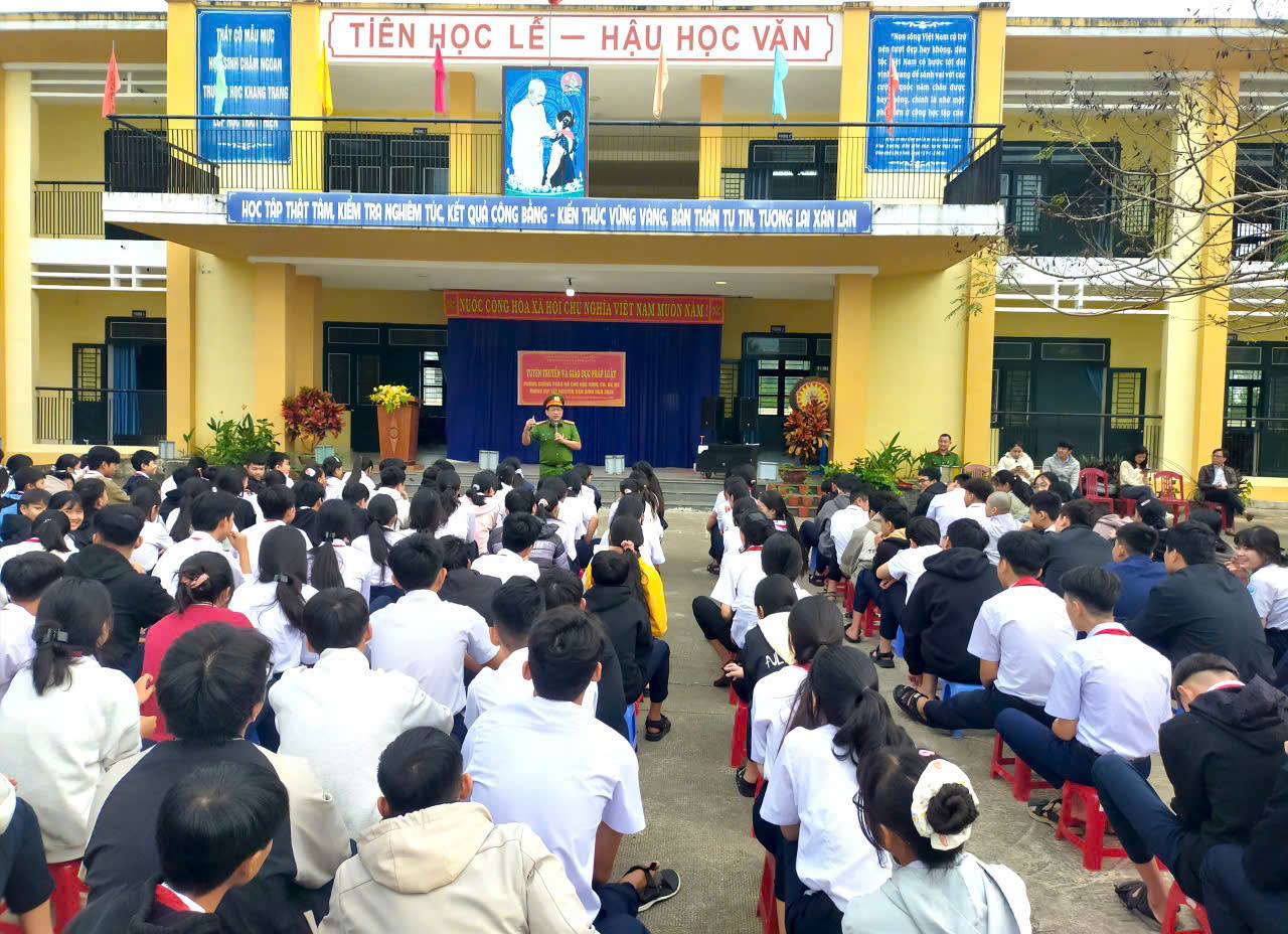 CÔNG AN PHƯỜNG ĐIỆN BÀN ĐÔNG PHỐI HỢP TĂNG CƯỜNG TỔ CHỨC TUYÊN TRUYỀN, PHỔ BIẾN PHÁP LUẬT TẠI CÁC TRƯỜNG HỌC TRÊN ĐỊA BÀN