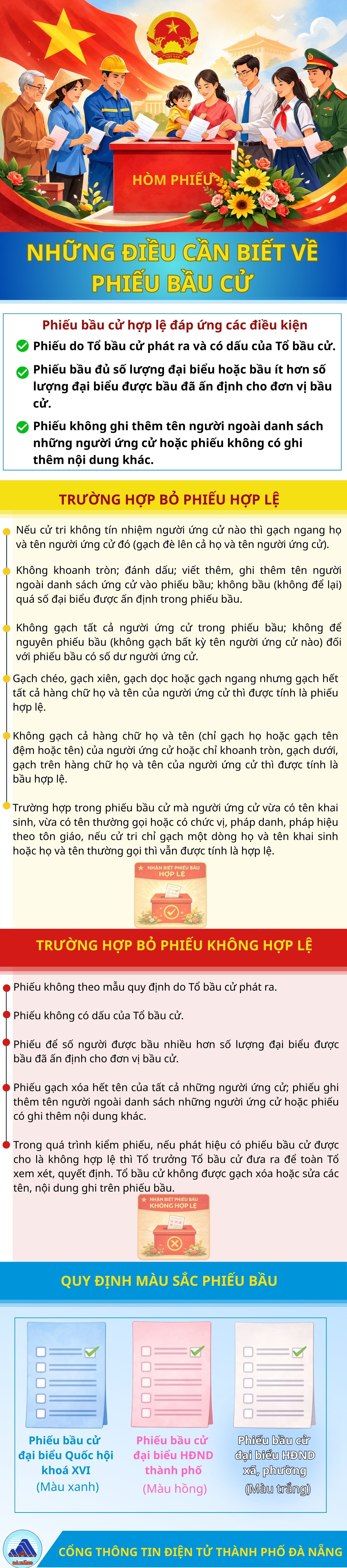 Ngày 15-3-2026, cử tri cả nước tham gia bầu cử đại biểu Quốc hội khóa XVI và đại biểu HĐND các cấp nhiệm kỳ 2026-2031. Dưới đây là những điều cần biết về phiếu bầu cử.