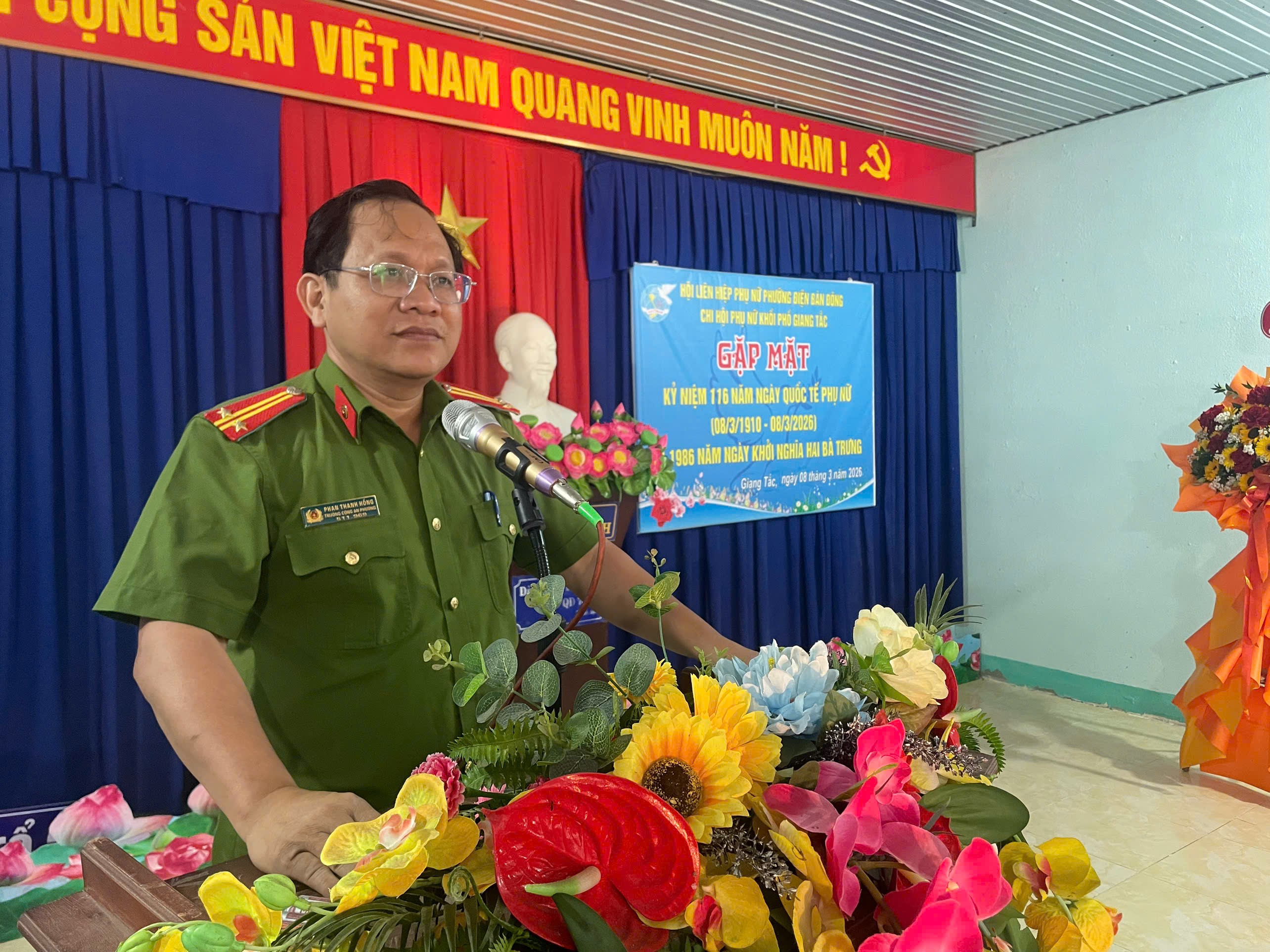 Nhân kỷ niệm 116 năm ngày Quốc tế Phụ nữ (08/3/2026), Công an phường phường Điện Bàn Đông phối hội Hội liên hiệp phụ nữ phường tổ chức sinh hoạt tại Chi hội phụ nữ khối phố Giang Tắc và Hà Dừa, phường Điện Bàn Đông; phối hợp tuyên truyền nâng cao trách nhiệm, vai trò của phụ nữ trong việc giáo dục con cái không vi phạm pháp luật.