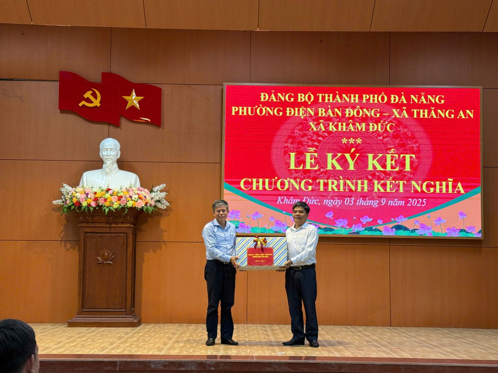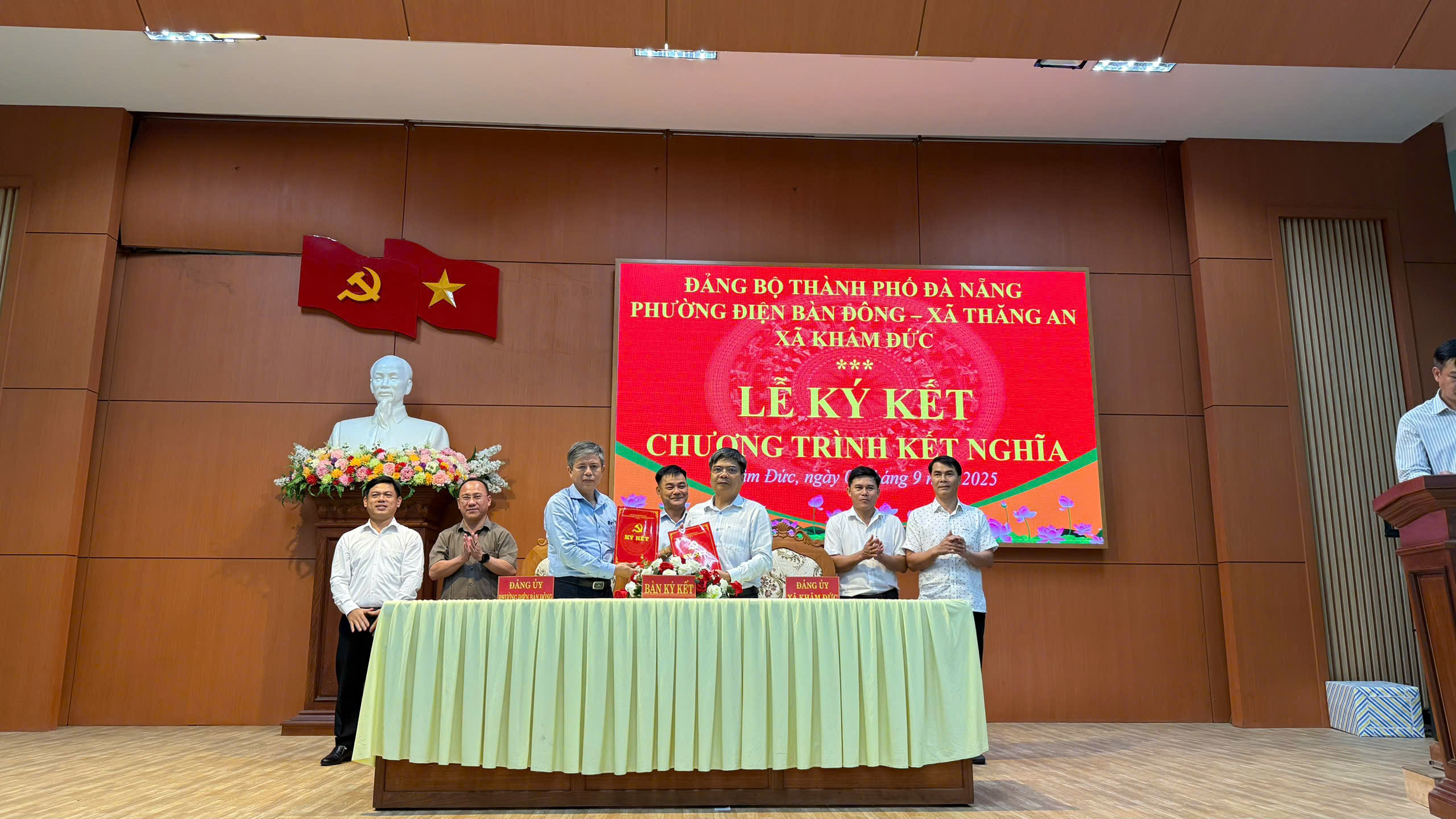 Chiều ngày 29 tháng 8 năm 2025, tại Hội trường Đảng uỷ xã Khâm Đức đã long trọng diễn ra Lễ ký kết Chương trình công tác kết nghĩa giữa Đảng ủy phường Điện Bàn Đông và Đảng ủy xã Khâm Đức, thành phố Đà Nẵng. Đây là một hoạt động thiết thực nhằm cụ thể hóa Nghị quyết số 02-NQ/TU ngày 29/7/2025 của Thành ủy Đà Nẵng và Công văn số 389-CV/TU ngày 25/8/2025 về chủ trương tăng cường kết nghĩa, hỗ trợ giữa các địa phương trong thành phố.
