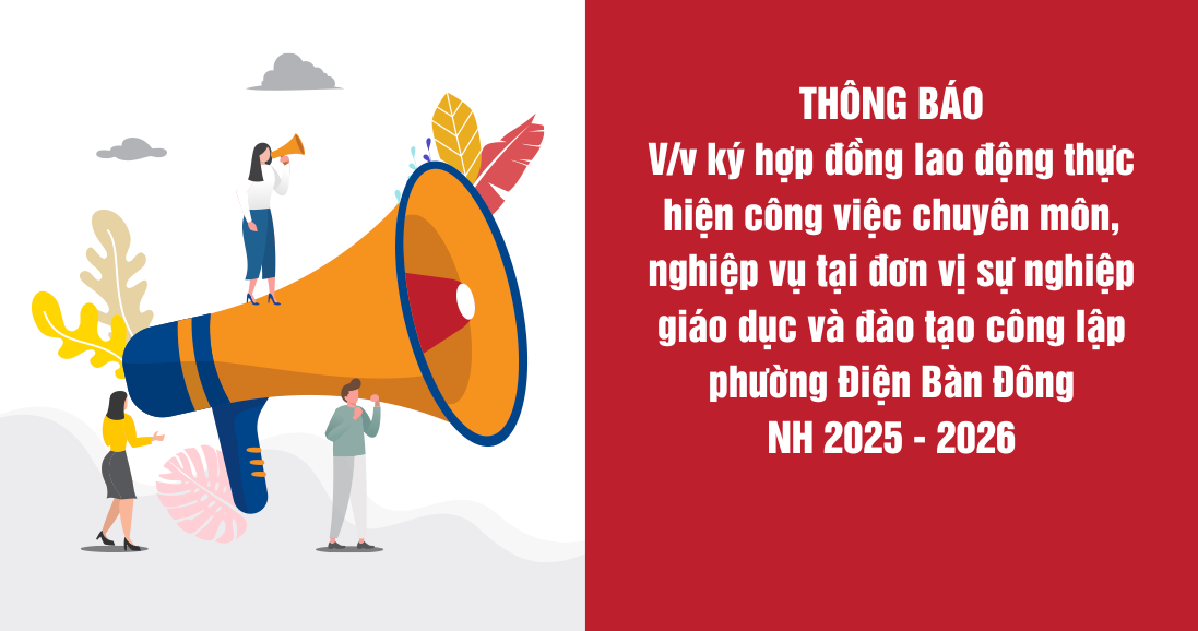 TB V/v ký hợp đồng lao động thực hiện công việc chuyên môn, nghiệp vụ tại đơn vị sự nghiệp giáo dục và đào tạo công lập phường Điện Bàn Đông NH 2025 - 2026