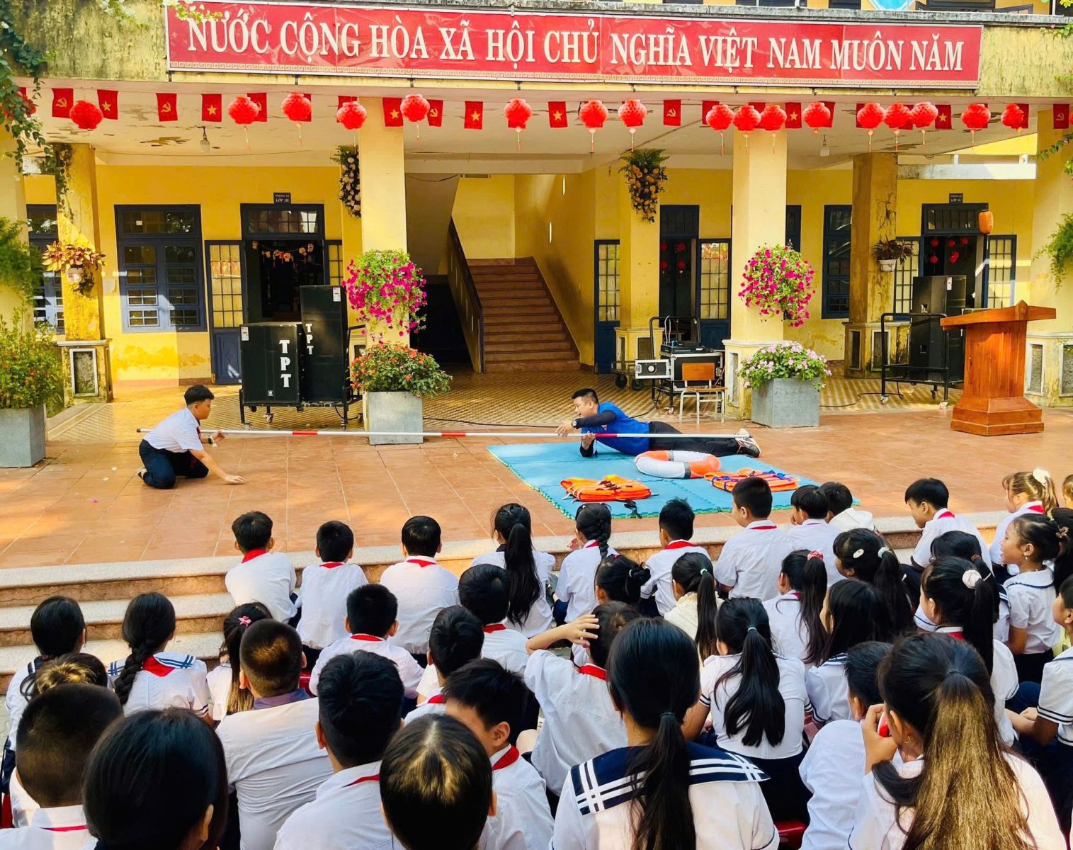 Sáng ngày 06/4/2025, trong buổi sinh hoạt dưới cờ, Trường Tiểu học phan ngọc nhân đã tổ chức lồng ghép tuyên truyền chuyên đề phòng, chống đuối nước cho toàn thể học sinh. Hoạt động được tổ chức bài bản, lồng ghép giữa tuyên truyền kiến thức và hướng dẫn kỹ năng, góp phần nâng cao nhận thức, hình thành ý thức tự bảo vệ cho các em ngay từ môi trường học đường.