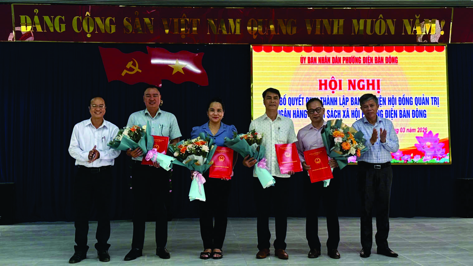 Tại hội nghị, UBND phường đã công bố quyết định thành lập Ban đại diện Hội đồng quản trị Ngân hàng Chính sách xã hội phường Điện Bàn Đông gồm 4 thành viên. Ông Nguyễn Thanh Vỹ – Chủ tịch UBND phường được giao làm Trưởng ban.