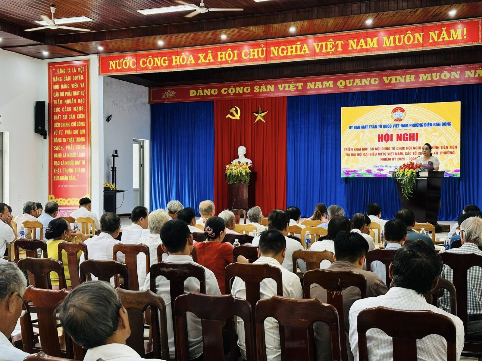 UỶ BAN MẶT TRẬN TỔ QUỐC VIỆT NAM PHƯỜNG ĐIỆN BÀN ĐÔNG TỔ CHỨC HỘI NGHỊ TRIỂN KHAI MỘT SỐ NỘI DUNG TỔ CHỨC HỘI NGHỊ ĐIỂN HÌNH TIÊN TIẾN VÀ ĐẠI HỘI ĐẠI BIỂU MTTQ VIỆT NAM, CÁC TỔ CHỨC CHÍNH TRỊ XÃ HỘI PHƯỜNG NHIỆM KỲ 2025-2030