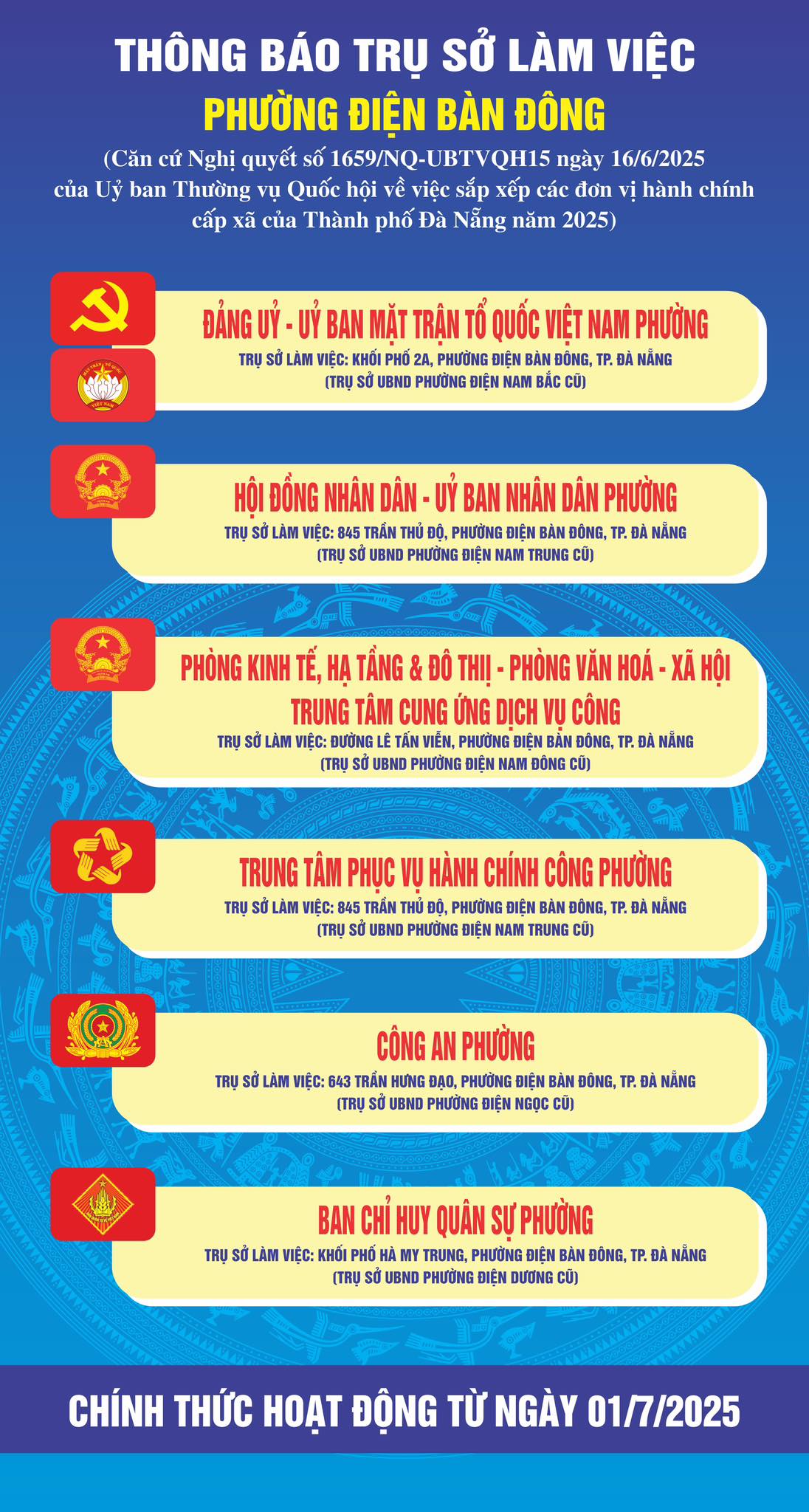 THÔNG BÁO CHÍNH THỨC VỀ TRỤ SỞ LÀM VIỆC PHƯỜNG ĐIỆN BÀN ĐÔNG